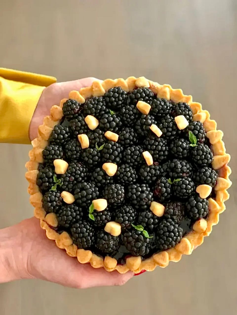 puoi decorare la crostata di more con una leggera spolverata di zucchero a velo.